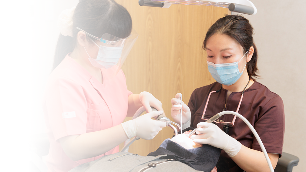 歯科医師・歯科衛生士・歯科助手・受付の各ポジションが、プロ意識をもってそれぞれの役割に取り組み、チームで協力して診療体制を組んでいます。